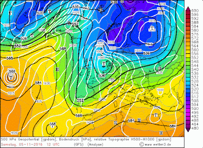 El sábado llegaría un potente frente del suroeste, asociado a una profunda vaguada Atlántica. Las precipitaciones llegaron con contundencia a ambas vertientes, registrándose entre 35/60 mm, superándose los 90 mm en Monte Perdido. Cota de nieve de 2400 m al amanecer, bajando al final del día hasta los 1500 m. Se acumularon 3-4 cm de nieve a 1600 m, entre 10/15 cm a 2200 m, y entre 40/70 cm a partir de 2600 m.